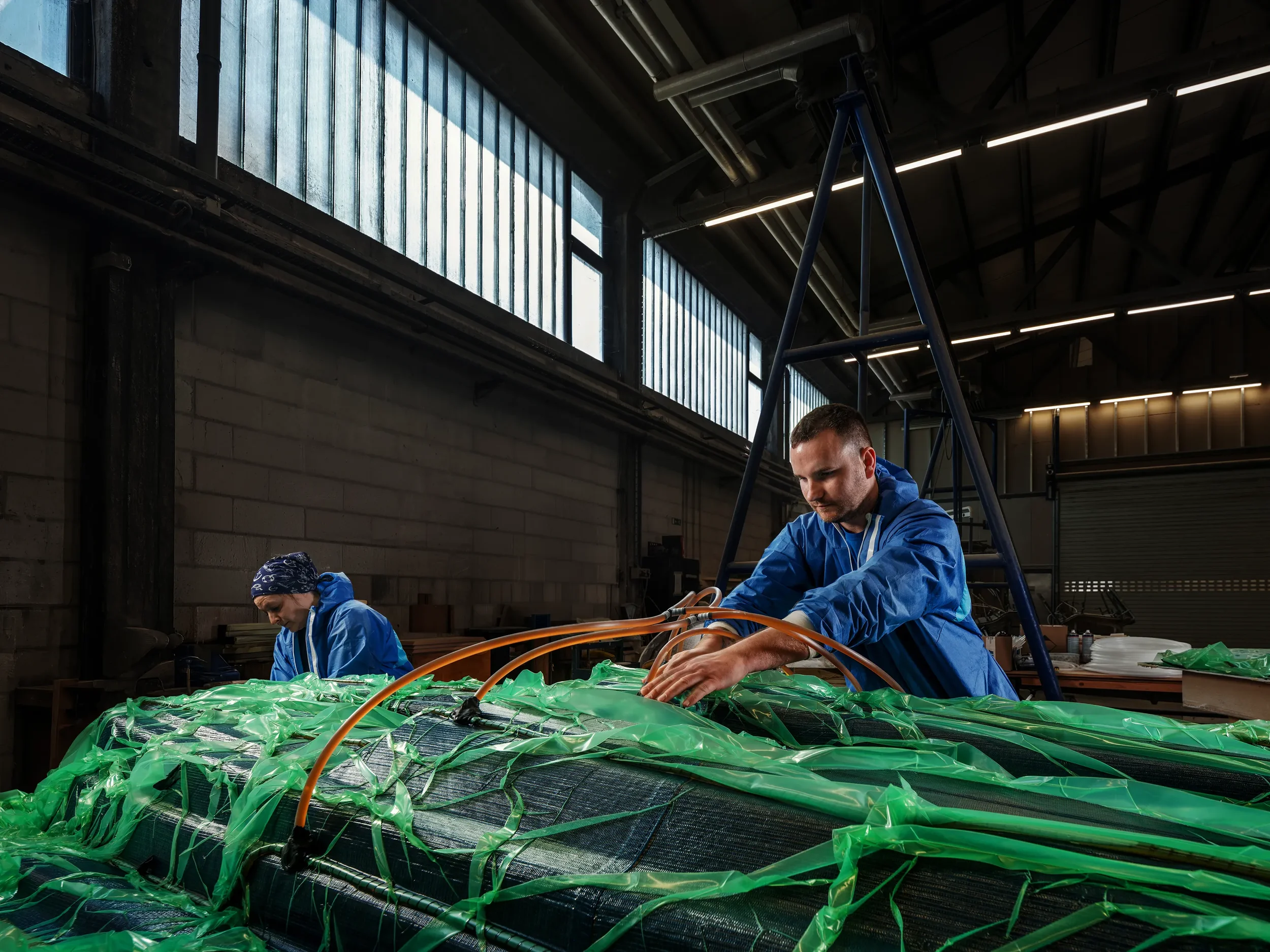 While closed-moulding is the serial standard, Hand Lay-up remains our gold standard for rapid prototyping and complex, non-linear geometries. This process allows for manual layering precision in the development of "proof-of-concept" parts or smaller production runs where geometric complexity restricts the use of matched tooling.